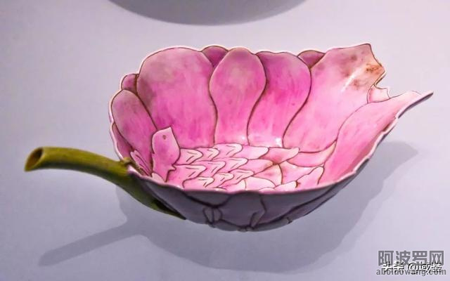 携一池荷花,盛开在烟雨江南。苏州博物馆的这件“粉彩绿里花形盃”,将梦里水乡的清灵婉约以釉色渲染。荷花盛放,如火如荼,莲瓣下镶嵌一片翠叶,绿色掩映中,一派勃勃生机的景象。盃内釉里是湖蓝色,清似天,淡若水,水天一色,美轮美奂。