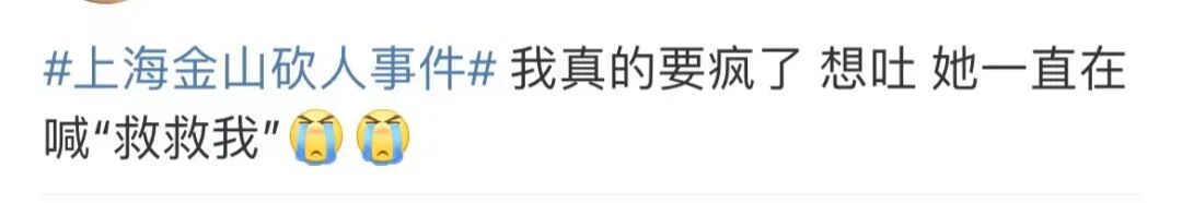 真的很震惊也很难过,尤其是在金山那个视频里,听到女子一边被砍,一边在喊救命的样子,太让人心疼了。